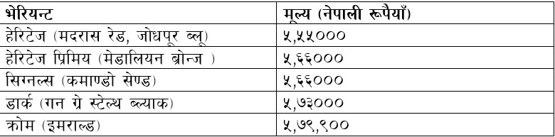 हेरिटेज प्रिमियम: यो भेरियन्ट मेडालियन ब्रोन्जमा उपलब्ध छ । यसले क्लासिकको वास्तविक स्वरूपलाई थप समृद्ध बनाएको छ ।
