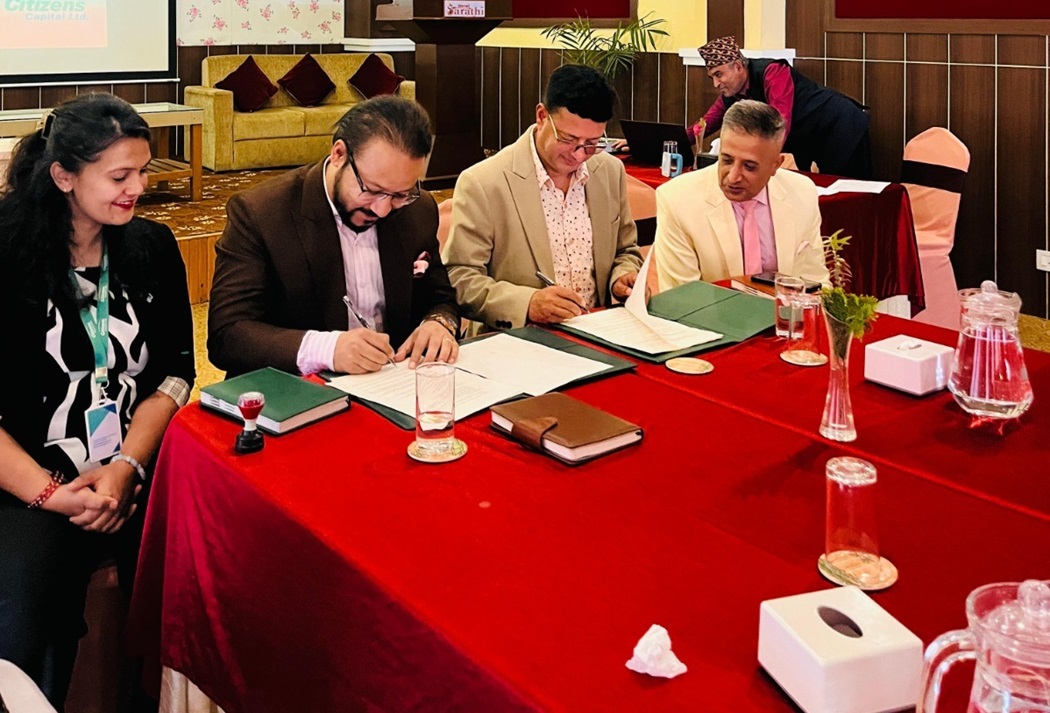 काठमाडौं । होटेल सारथी प्रालि र सिटिजन्स क्यापिटल लिमिटेडबीच आईपीओ जारी गर्ने प्रक्रियाका लागि जारी तथा निर्गमन प्रबन्धक नियुक्तिसम्बन्धी सम्झौतापत्रमा हस्ताक्षर भएको छ । होटेल सारथी, धुलिखेलमा आयोजित एक विशेष समारोहमा होटेलका कार्यकारी अध्यक्ष प्रल्हाद प्याकुरेल र क्यापिटलका प्रमुख कार्यकारी अधिकृत सबिर बादे श्रेष्ठले सम्झौतापत्रमा हस्ताक्षर गरेका हुन् ।
