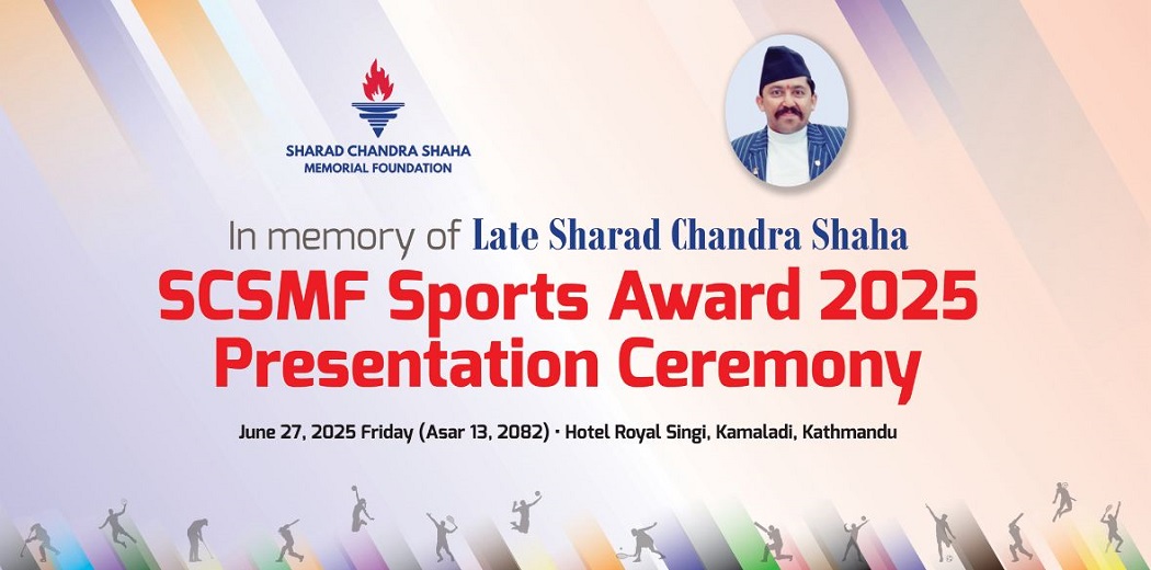 काठमाडौं । शरद चन्द्र शाहा मेमोरियल फाउन्डेसन ( एससीएसएमएफ) ले आफ्नो वार्षिक ‘एससीएसएमएफ स्पोर्टस् अवाड’ को दोस्रो संस्करण असार १३ गते काठमाडौंको कमलादीस्थित होटल रोयल सीङ्गीमा सम्पन्न गरेको छ। नेपाली खेलकुदमा योगदान पु¥याएका स्थापित हस्ती र उदाउँदा प्रतिभालाई सम्मान गर्ने उद्देश्यले स्थापित यो पुरस्कार समारोहमा यस वर्ष पनि एक वरिष्ठ र एक युवा खेलाडीलाई सम्मान गरियो।