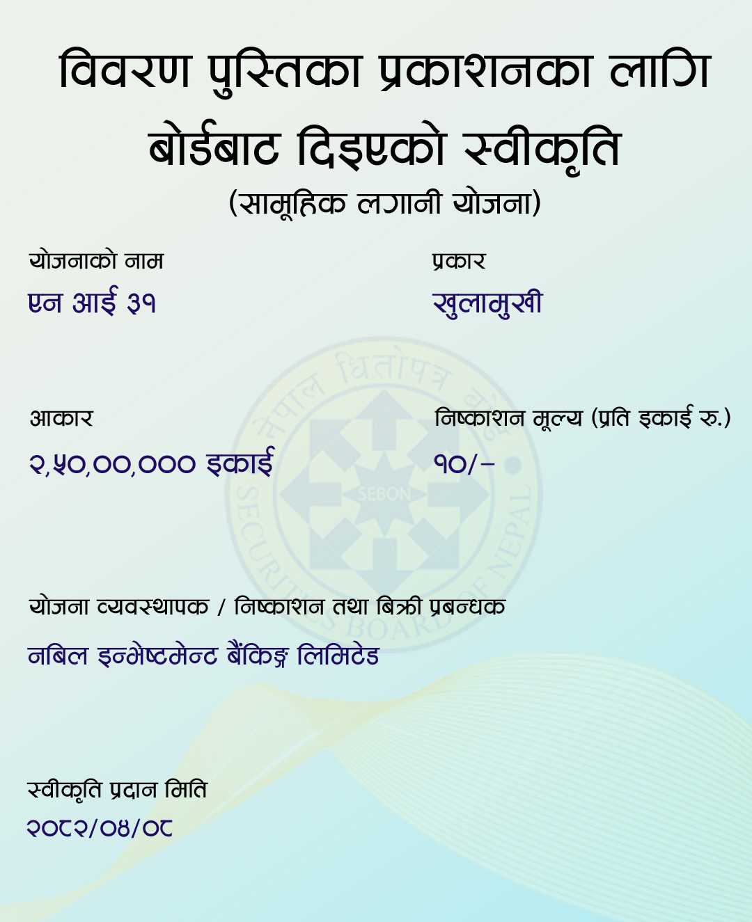 एनआई ३१ म्युचुअल फन्डलाई २ करोड ५० लाख इकाई बिक्रीको अनुमति