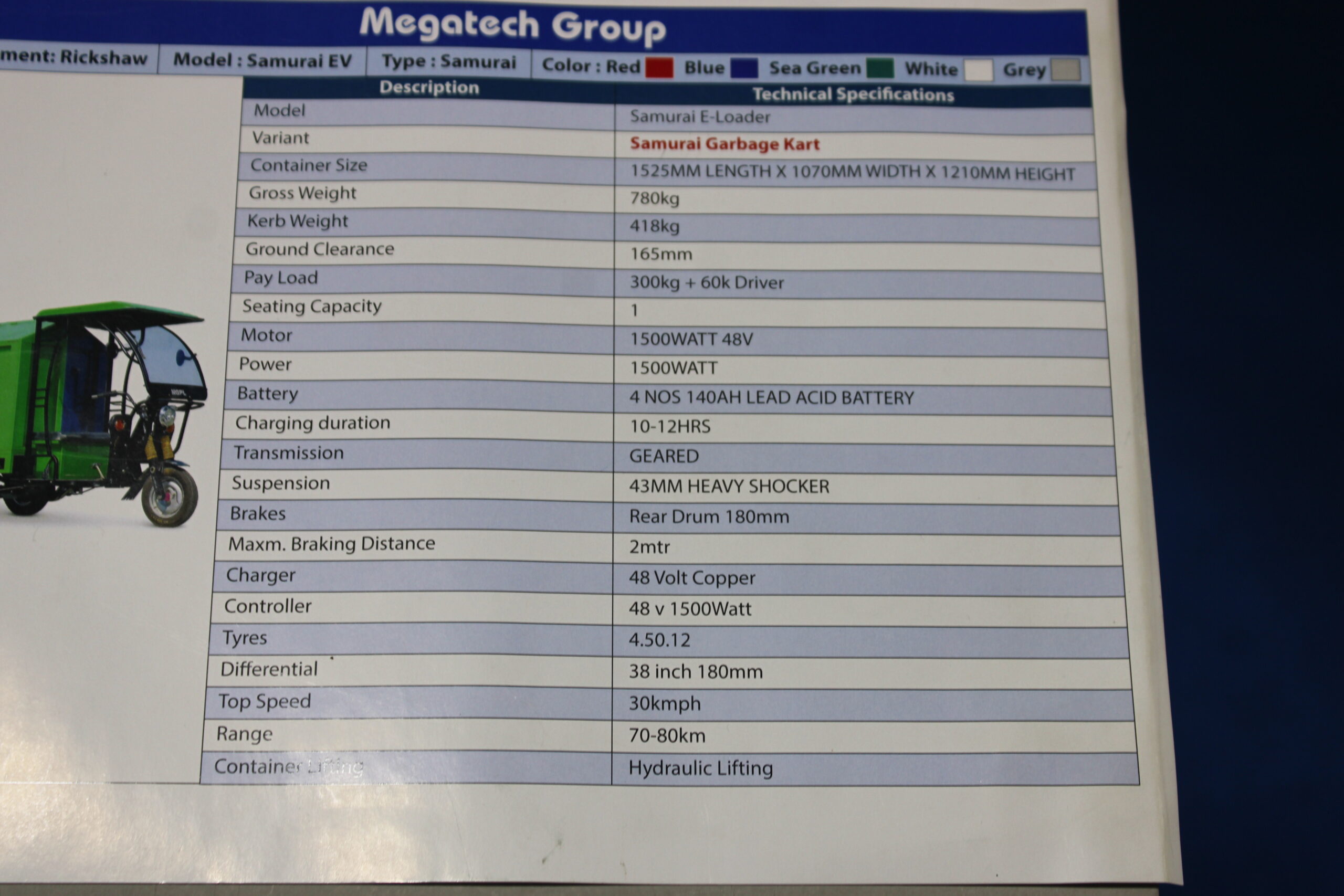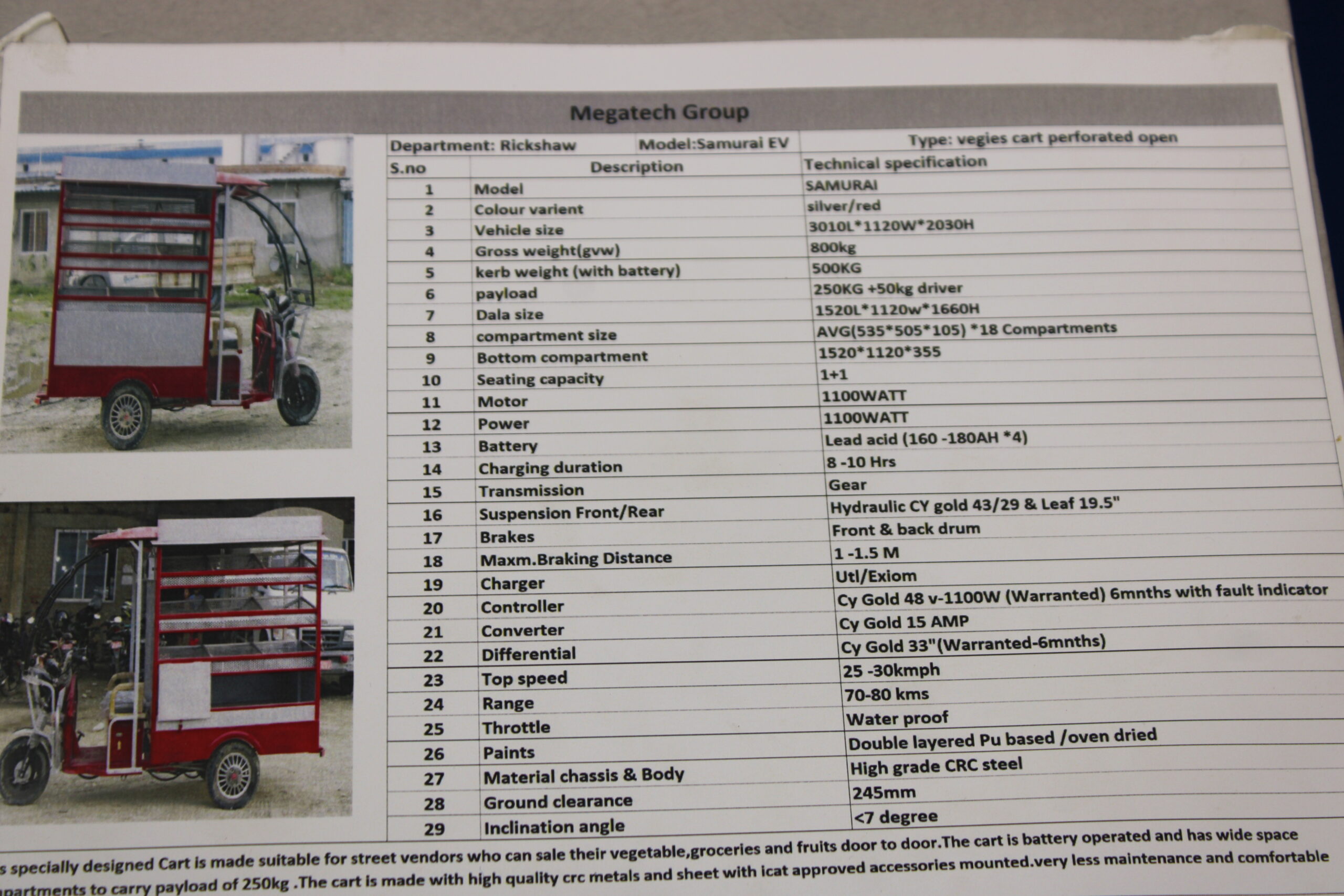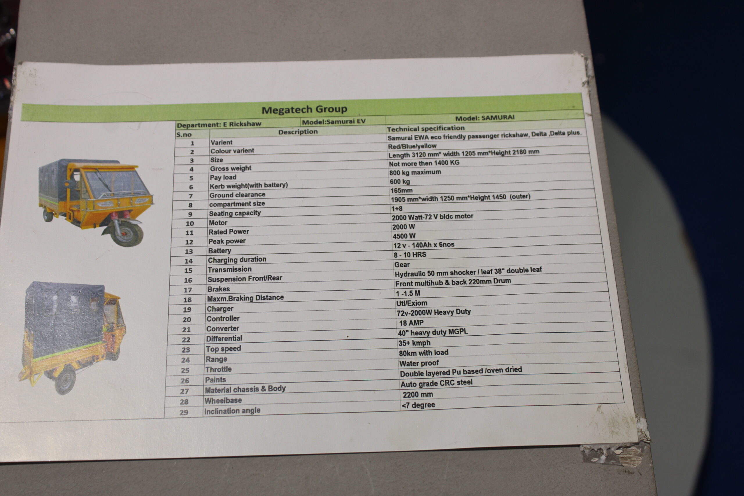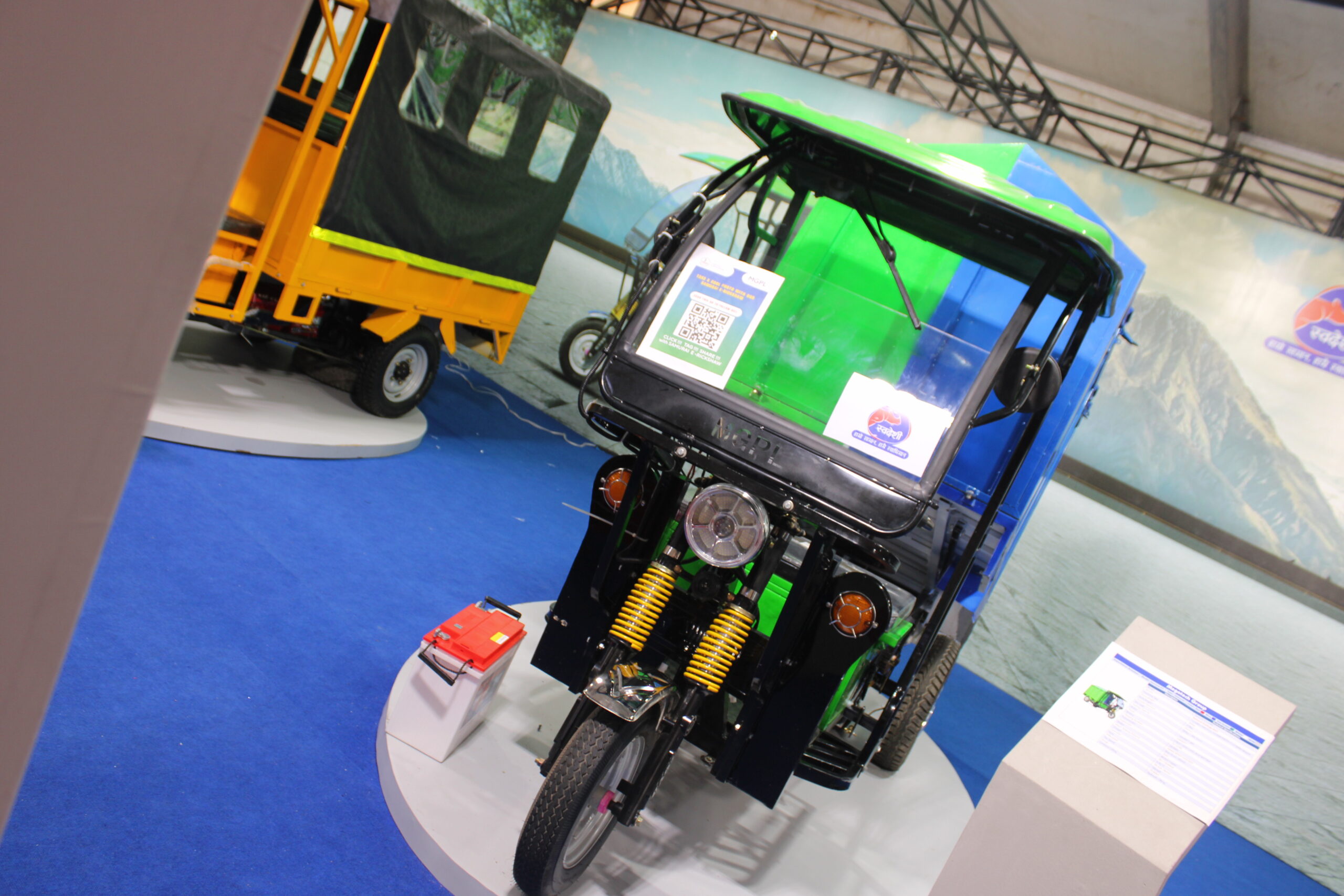 मेगाटेक कम्पनीले ‘ हाम्रो सामान, हाम्रै स्वाभिमान‘ ’ भन्ने नारा सहित ५ थरीका तिनपांग्रे साधन बजारमा ल्याएको हो । एक्स्पोमा विद्युतीय नयाँ मोडलसँगै व्याट्री पनि प्रदर्शनमा राखिएको थियो । एक्स्पो स्थलको अन्त्यमा बाहिर निस्कने ठाउंमा ३ पांग्रेको स्टल राखिएको थियो ।