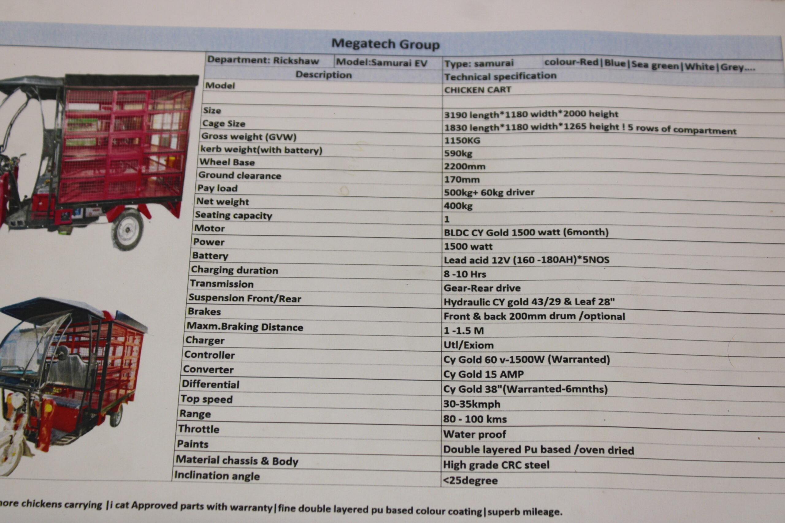 १० देखि १३ डिग्रिको ग्रेडवृद्धिको उकालो सजिलै कुद्न सक्ने भएकाले सबै खाले बजारमा यसको सम्भावना रहेको कम्पनीको भनाई छ । मेगाटेक कम्पनीले स्वदेशमा नै निर्माण गरीएको रिक्सालाइ ‘हाम्रो सामान, हाम्रै स्वाभिमान’ भन्ने नारा सहित ५ थरीका तिनपांग्रे सवारी साधन बजारमा ल्याएको हो ।
