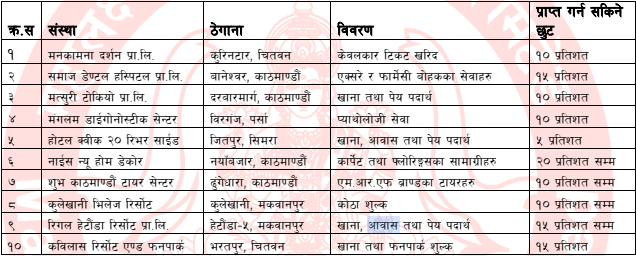 उक्त संस्थाहरु र प्राप्त गर्न सकिने छुट निम्न लिखित छन्ः