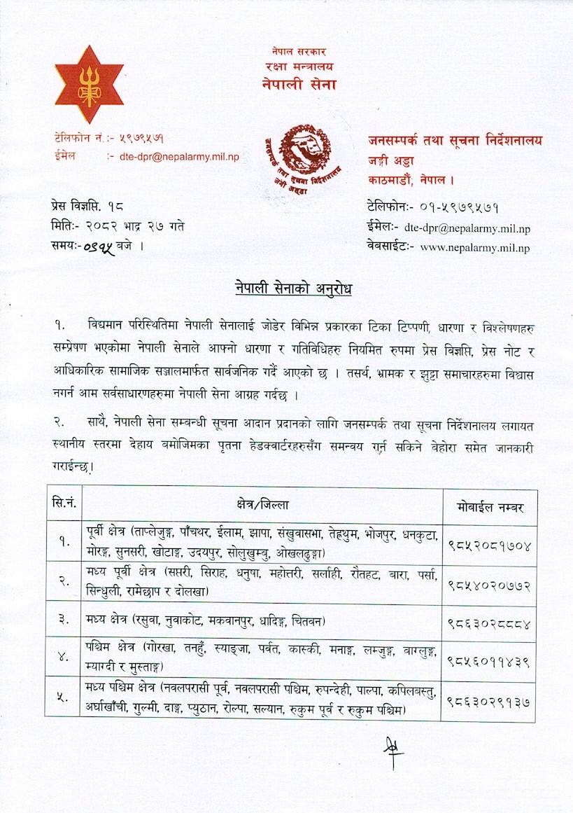 नेपाली सेनाको अनुरोध- भ्रामक र झुट्टा समाचारमा विश्वास नगरौं