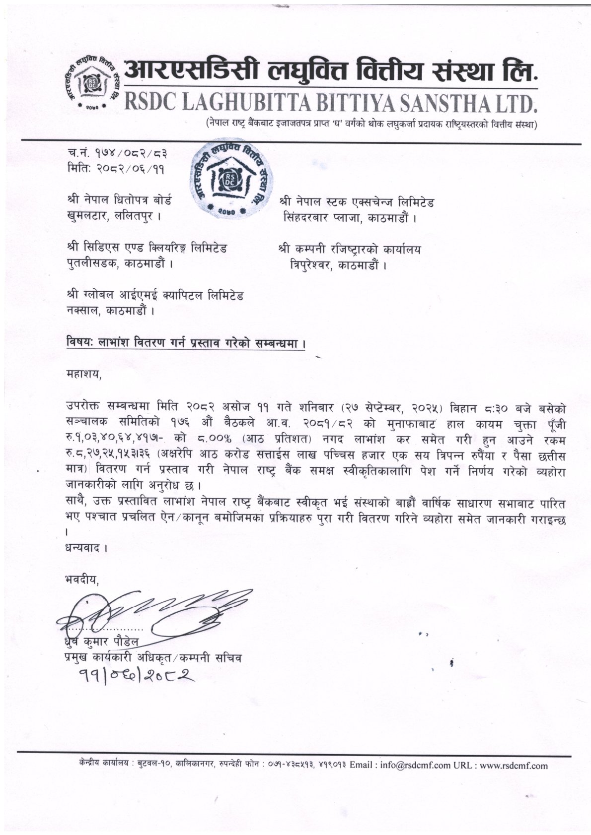 आरएसडिसी लघुवित्तको नगद लाभांश घोषणा