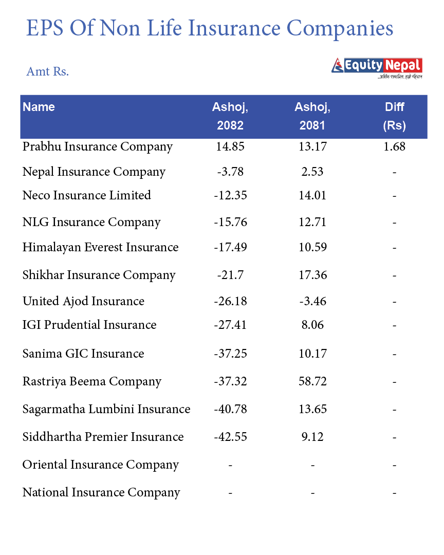 प्रभु इन्सुरेन्सको प्रतिसेयर आम्दानी १४.८५ रुपैयाँ छ । अरु कम्पनीहरुको उक्त आम्दानी ऋणात्मक छ ।