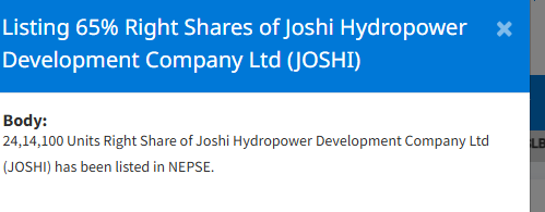 जोशी हाइड्रोपावरको हकप्रद सेयर सूचीकृत