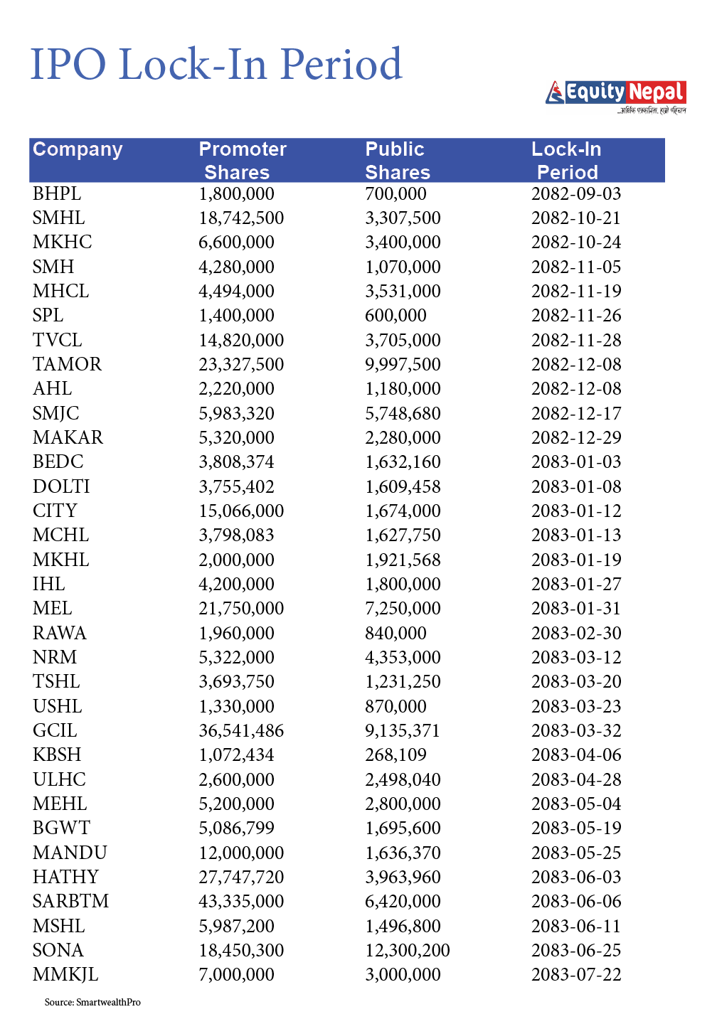 १ वर्षमा ३३ कम्पनीको ‘लकइन’ खुल्दै, कुनको कहिले ?