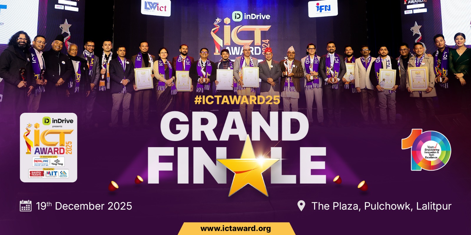 The grand finale of the tenth edition of the ICT Award, recognized as a prestigious award in the information and communication technology sector, will be held on Friday, 4th of Poush. The “inDrive ICT Award 2025, in association with NepalPay QR, TingTing powered by Sasto Tickets, MIT, and KMC,” will be held at The Plaza in Pulchowk, where awards will be presented in 17 different categories.