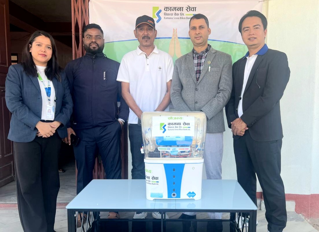 काठमाडौं । कामना सेवा विकास बैंक लिमिटेडले आफ्नो संस्थागत सामाजिक उत्तरदायित्व कार्यक्रम अन्तर्गत झापा स्थित दमक नगरपालिका वडा नं. ५ स्थित आधारभूत स्वास्थ्य केन्द र कमल गाउँपालिका वडा नं. ५ स्थित सामुदायिक स्वास्थ्य केन्द्र  सिम्लेलाई १-१ थान वाटर प्यूरिफायर र डिस्पेन्सर हस्तान्तरण गरेको छ ।
