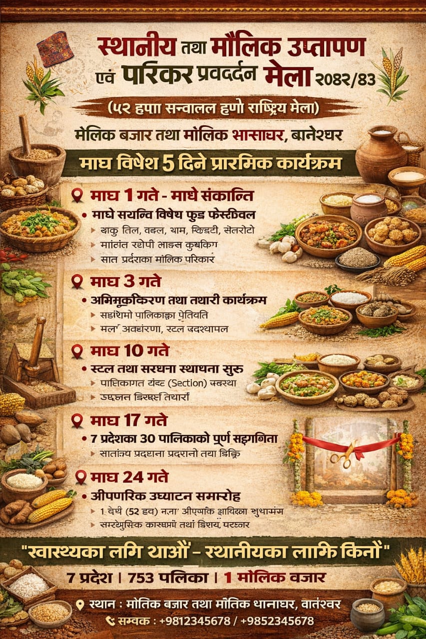 माघे संक्रान्ति अवसरमा ‘स्थानीय उत्पादन र रैथाने परिकार प्रवर्धन मेला २०८२–८३’ सुरू