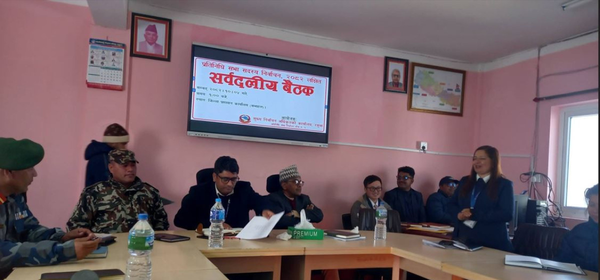 जिल्ला प्रशासन कार्यालयद्वारा आयोजित सो बैठक मुख्य निर्वाचन अधिकृत ध्रुवप्रसाद उप्रेतीका अध्यक्षतामा सम्पन्न भएको थियो । बैठकमा निर्वाचन तालिका र सहमति अनुसार राजनीतिक दल अगाडि बढ्ने,स्थानीय प्रशासकले सुरक्ष व्यवस्था सुदृढ पार्ने, जस्ता विविध विषयमा छलफल भएको थियो । जिल्लामा ४१ हजार चार सय ७१ मतदाताले आफ्नो मताधिकार प्रयोग गर्ने बताइएको छ ।