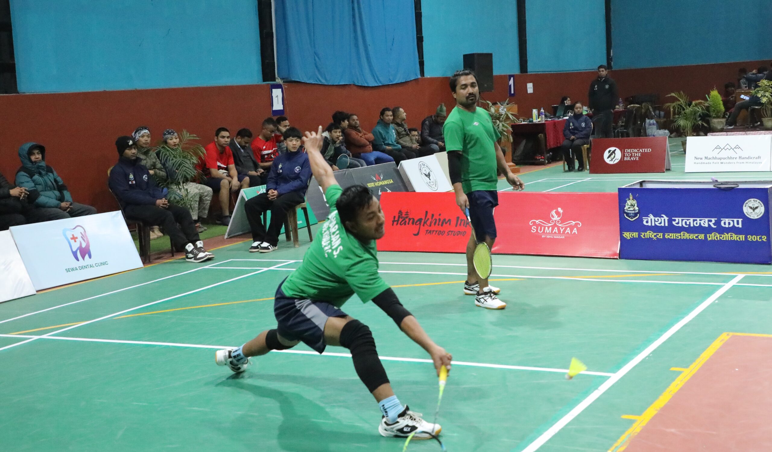 काठमाडौं । पीएफसीका सञ्जय कपाली र अनिल थाम्सुहाङको जोडी चौथो यलम्बर कप राष्ट्रिय खुला ब्याडमिन्टन प्रतियोगिताको भेट्रान ४५ वर्षमाथि पुरुष सिंगल्समा बिहीबार प्रिक्वाटरफाइनलमा प्रवेश गरेका छन् ।