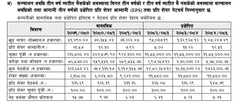 गत आर्थिक वर्षमा कम्पनीले ७ करोड ३२ लाख रुपैयाँ नाफा कमाएको थियो । कम्पनीले आर्थिक वर्ष २०८२-८३ को अन्त्यसम्ममा ९ करोड ५० लाख रुपैयाँ नाफा कमाउने प्रक्षेपण गरेको छ । त्यस्तै, २०८३—८४ मा १३ करोड २९ लाख रुपैयाँ नाफा कमाउने प्रक्षेपण गरेको छ ।