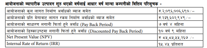 कम्पनीले आफ्नो जारी पुँजी १ अर्ब १८ करोड ५० लाख रुपैयाँको २२ प्रतिशत अर्थात्, २६ करोड ७ लाख रुपैयाँ बराबरको २६ लाख ७ हजार कित्ता सेयर बिक्री गर्न नेपाल धितोपत्र बोर्डबाट अनुमति पाएको हो । जसमध्ये, ११ लाख ८५ हजार कित्ता सेयर आयोजना प्रभावित क्षेत्रका बासिन्दाहरुको लागि बाँडफाँड गरी सकिएको छ ।