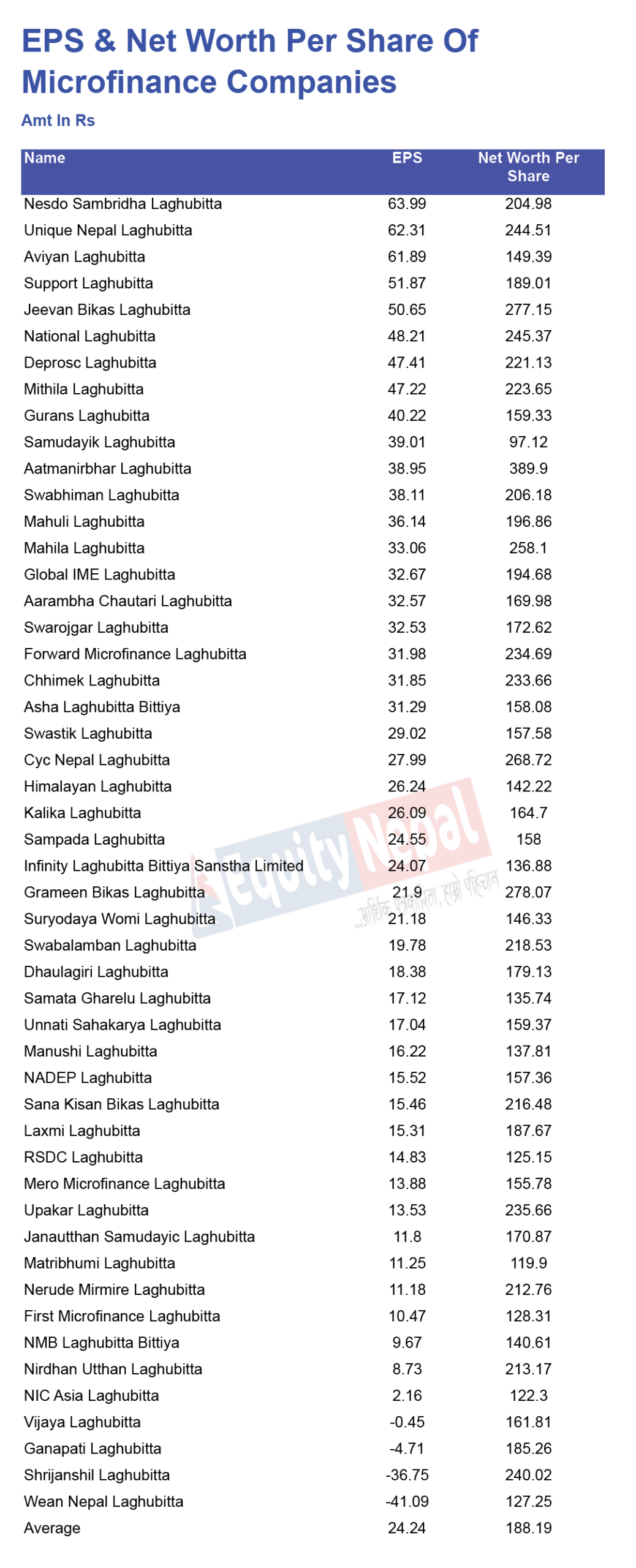 यता, सबैभन्दा धेरै प्रतिसेयर नेटवर्थ हुनेमा आत्मनिर्भर लघुवित्त रहेको छ । यसको नेटवर्थ ३८९.९० रुपैयाँ छ ।