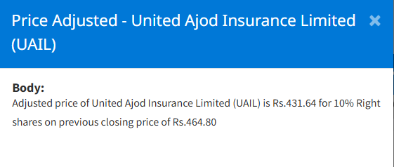 बिहिबारको अन्तिम कारोबार मूल्य ४६४.८० रुपैयाँलाई आधार मानेर भाउ समयोजन गरेएको हो । कम्पनीको समायोजित मूल्यलाई आधार मानेर आइतबार कारोबार खुला हुनेछ।