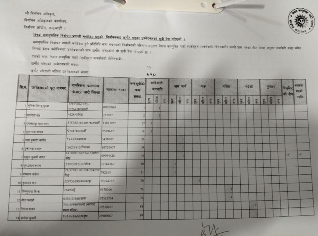एमालेले बुझायो समानुपातिक सांसद बन्ने १६ जनाको नाम