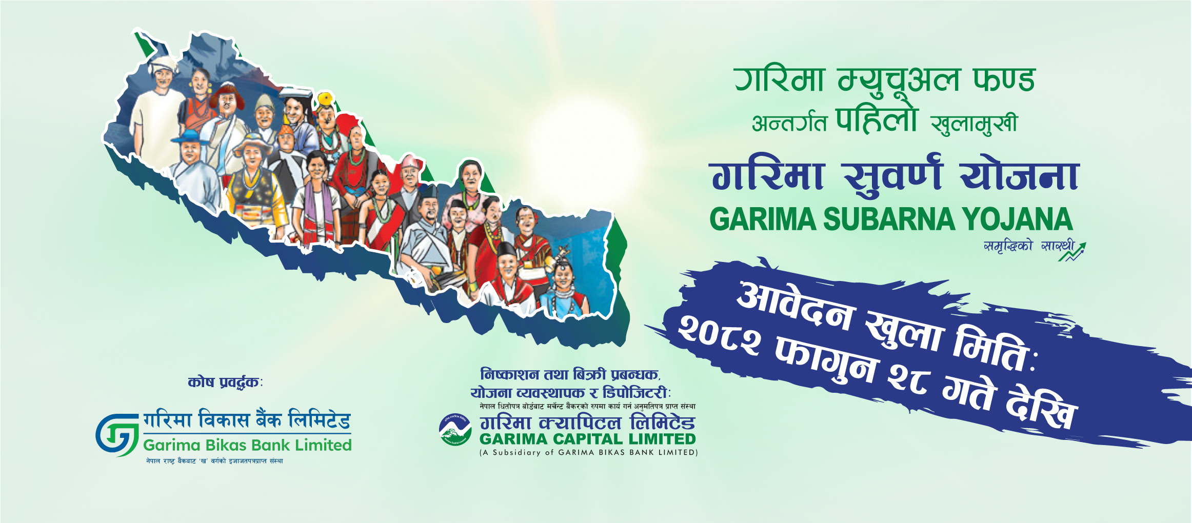 गरिमा म्युचुअल फण्ड अन्तर्गत सञ्चालन हुने सो योजनाको धितोपत्र निष्काशन तथा बिक्री प्रबन्धक गरिमा क्यापिटल क्यापिटल लिमिटेड रहेको छ। उक्त योजनाको इकाईमा लगानीकर्ताले धितोपत्र बोर्डबाट आश्वा अनुमति लिएका सम्पूर्ण बैंक तथा वित्तीय संस्थाहरुबाट सि आस्बा प्रणालीमार्फत आवेदन दिन सक्नेछन्। त्यस्तै, सिडिएस एण्ड क्लियरिङ्गद्वारा सञ्चालित मेरो शेयर वेब तथा एपबाट पनि आवेदन दिन सक्नेछन्।