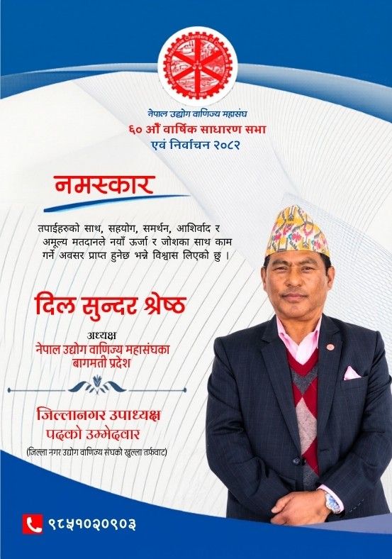 काठमाडौं । मुलुकको व्यवसायमा तीन दशक बढी योगदान पुराएका व्यक्ति हुन् दिल सुन्दर श्रेष्ठ । तीन दशकको समयमा व्यक्तिगत भन्दा पनि ‘समाज र मुलुकलाई हरतर्फको योगदान दिनुपर्छ’ भन्ने उद्देश्यका साथ अघि बढेको व्यक्ति हुन श्रेष्ठ । त्यसैले गर्दा आर्थिक मात्र नभई राजनीतिक, शैक्षिक,सामाजिक सेवामार्फत् विभिन्न क्षेत्रमा प्रत्यक्ष तथा अप्रत्यक्ष रुपमा योगदान दिदै आएका छन् ।