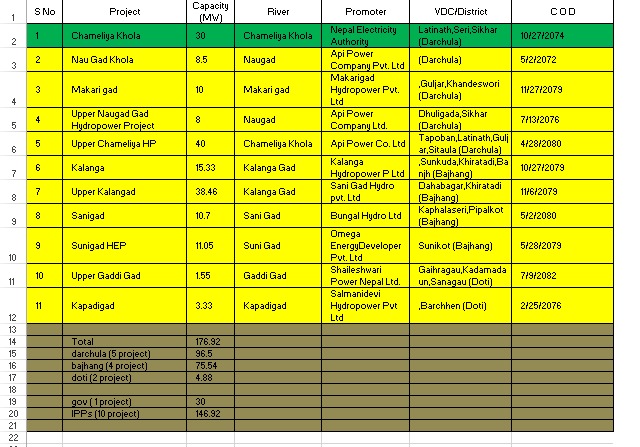 सुदूरपश्चिममा सबैभन्दा धेरै विद्युत उत्पादनको सम्भावना रहेका ३ जिल्लामा बाजुरामा २१८८ मेगावाट, बझाङमा १९३५ मेगावाट, र अछाममा १३४८ मेगावाट क्षमता रहेको जोशीले बताइन् ।